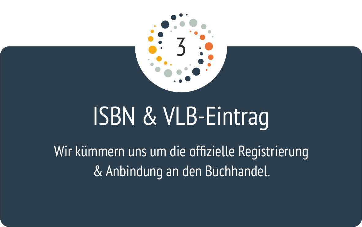- ISBN-Vergabe + Eintragung im Verzeichnis lieferbarer Bücher (VLB)